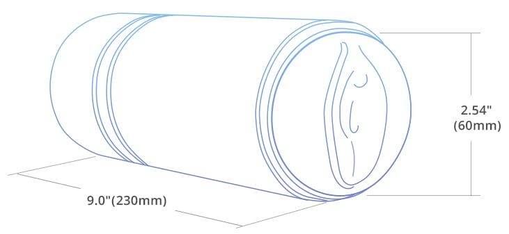 The entirety of the device measures in at 9 inches long and 2.5 inches in diameter, the inner canal being slightly less than both measurements, the company's claim that 95% of men can comfortably make use of this device is believable as it is very accommodating inside and men who can't fit in a 9 inch long sex toy are something of a rarity.