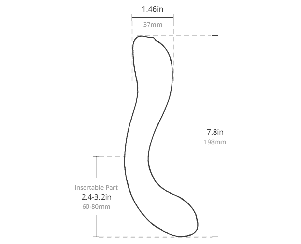 The entire toy is 7.8 inches in length and about 1.5 inches in diameter, with the insertable portion being 3.2 inches long in total but depending on the location of your G-Spot and how you'd like to use the vibrator you might not even have it fully inserted. 3.2 inches is simply where the first curve of the S curve gives way to the second.
