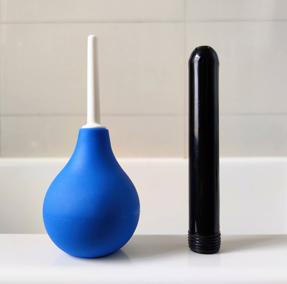 Alternatively, you could use bulb-type douches or a standard drink bottle with a sipper top. Another method is to use shower hose attachments, but if you go this route, you will want to exercise some caution as water pressure can change at any time, and sudden temperature alterations (ex: toilet flushing during your shower) can severely burn your rectum.
